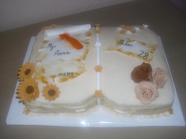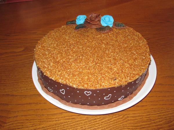 Moje první marlenka, dle receptu tady - bez vyvalování. Je pro manžela k dnešnímu svátku a moc mu chutná 🙂, tak se z toho těším . Ozdoby jsou z čokoplastelíny, srdíčka jsou na čokoládu domalovaná bělobou Wilton. ....jo a dolní začištění je s pomocí brčka, tímto děkuju mamina1978 za bezva tip, nechtěla se mi hledat kostice