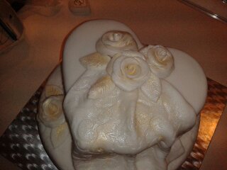 Čo sa týka stuhy na torte, ja dávam aj saténové aj obyčajné a nemám s nimi žiadny problém. Keď sa aj torta trošičku orosí a stuha tiež ono to nie je vidieť, fľaky sa mi neurobili ešte nikdy a na tortu ich prichytávam špendlíkom. Najprv som sa bála, aby špendlík nezjedli, ale stuhu musia dať z torty dolu tak či tak a so stuhou vytiahnú aj špendlík.