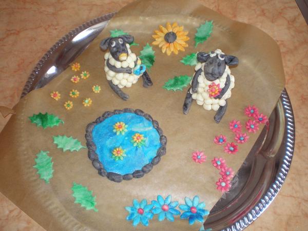 Holky prosím, můžete mi poradit jak zabarvit mléčnej marcipán gel. barvami, aby byla barva všude rovnoměrná. Já to dneska zkoušela a mám to pořád takové jakoby žíhané a to jsem barvila jen malé části, ale příští týden chci potáhnout dort, aby byl zelený a nevím, jak to velké množství obravit. Děkuju moc za rady, tady posílám ukázku figurek už připravených, no žádný zázrak, je to můj asi cca 7 dort a první s postavičkama 😀