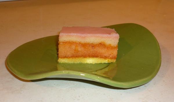 Tá spodná vrstva mi len teraz navlhla trochu, lebo som ho pokrájaný nešetrne prenášala v aute 😀 a farebný je preto taký, lebo vajíčka boli domáce a žltučkééé.