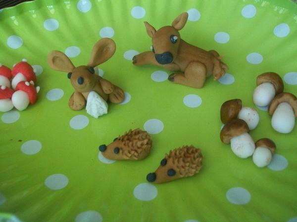 moje zvery na tortičku......ešte nejaké stromy či niečo....podobá sa tá potvorčka na jeleňa??? 😀 😀 😀