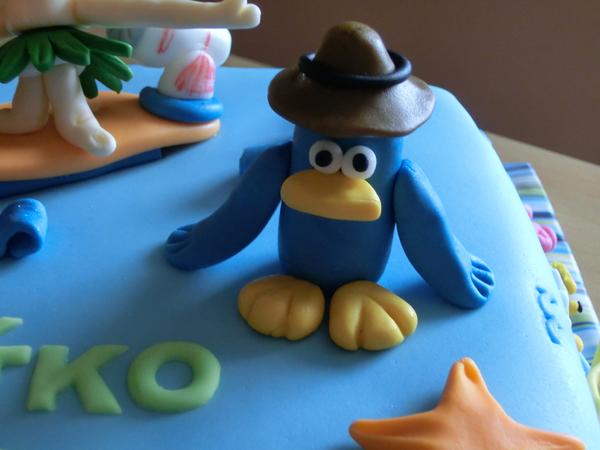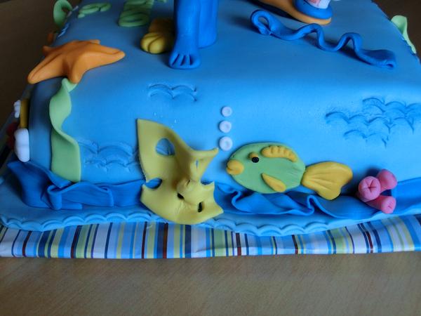 Tenhle dort jsem nedělala já, ale dělala ho jedna cukrářka, která právě začínala s potahovanými dorty, není ani vyztužený a držel. Jen tu figurku bych tam já nedávala...