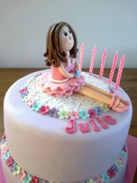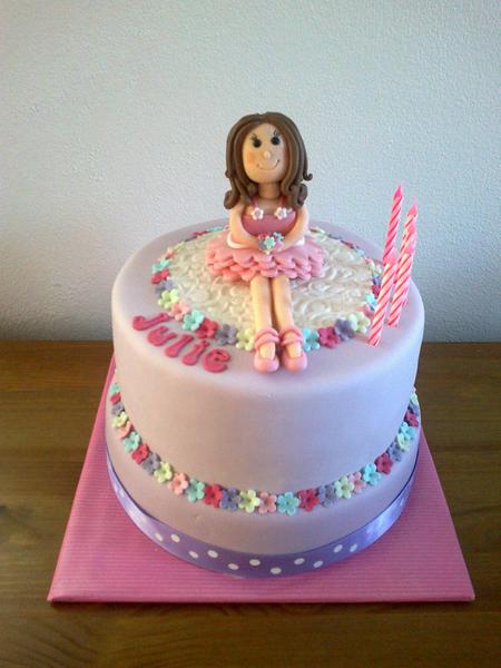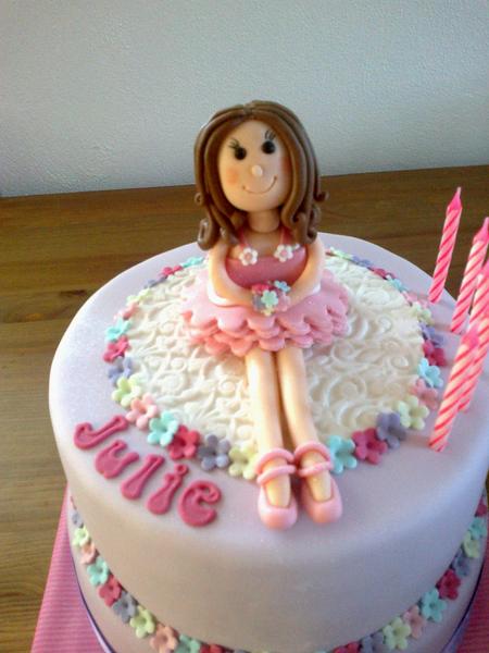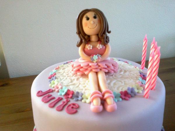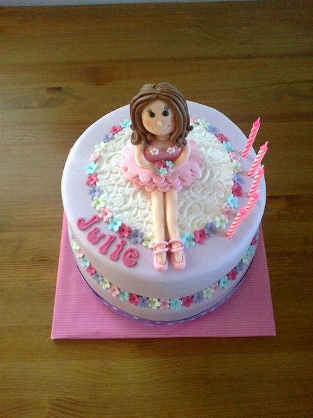 Moje baletková.. 🙂 Je pro moji stálou, každoroční zákaznici Julinku.. 😵 Uvnitře čokokorpus a čokokrém, banány, karamel se snickerskou a vanilka s čokoládou.. 4kg 🙂