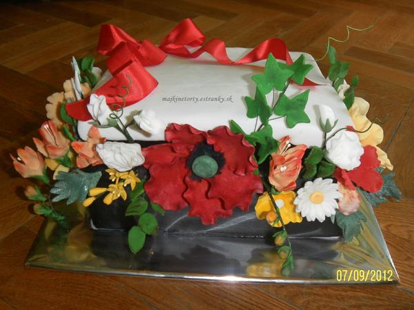 @abriela Vykrojila jsem si kolečko z hmoty na silněji vyválené a obtiskla do ní tuhle fólii http://www.cukrarskepotreby.cz/cz/produkt/struk... . Potom jsem jenom kolem nalepila kvítečka..🙂