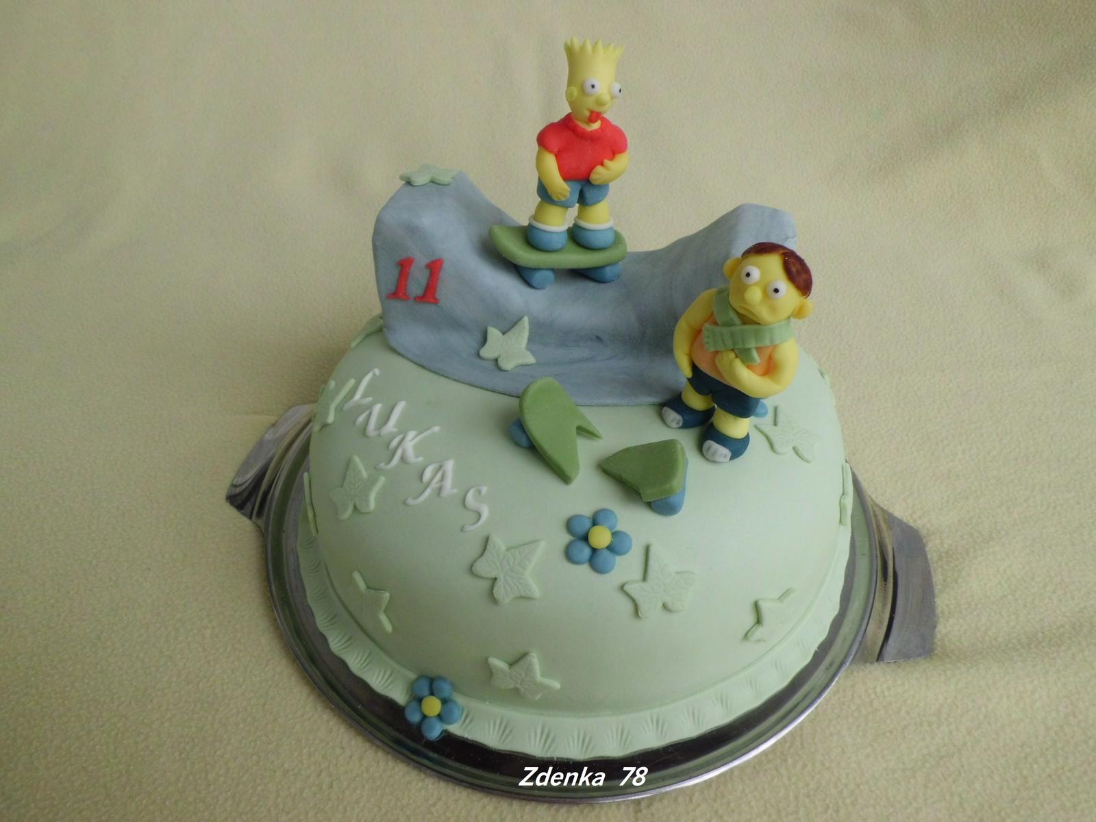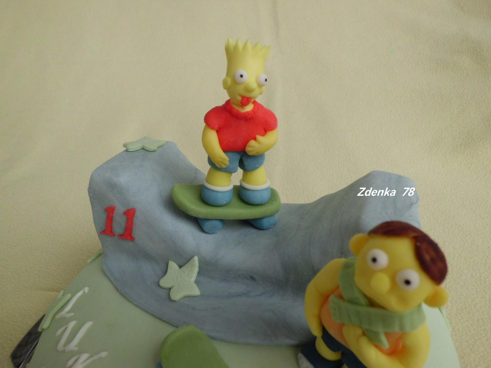 Moja torticka Simpsons pre mojho syna Lukasa k narodeninam.On je taky roztopasnik moj 😉 🙂 a ked si zaziadal torticku Simpsons , tak som si vymyslela takuto so zlomenym skyebordom a vyplazenym jazykom. 😉 🙂