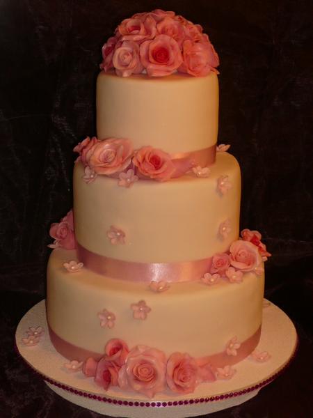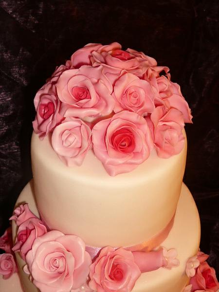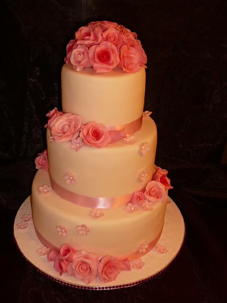 konečne hotovo, nohy vyložiť 🙂 hlavná svadobná ( ale vyšli mi zlé fotky v skutočnosti bola snehobiela jemne oflitrovaná, ružičky jemne ružové a niektoré mali cyklámenové stredy) zostáva mi len dúfať, že mi nevesta pošle foto od profesionálneho fotografa,