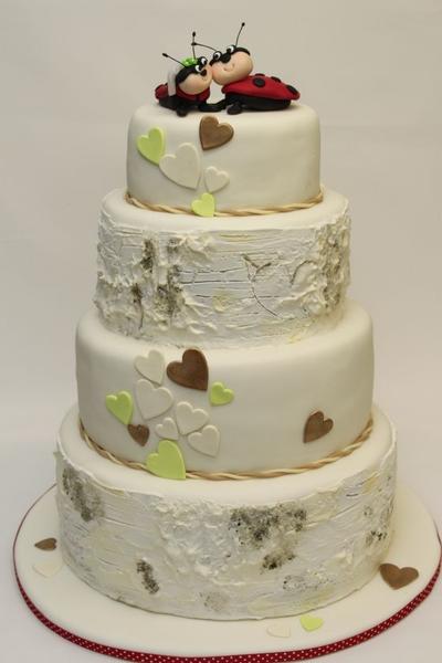 Baby nemate niektora ulozenu svadobnu tortu s lienkami? Nasla som pekne len tieto 2. Ta biela sa mi veeeelmo paci, ale neviem cim nahradit tie nesrdieckove poschodia - nejak nechapem co to je :D kora stromu?
