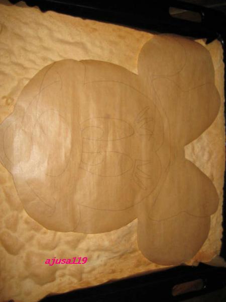 Dobre ranko nestiham vas citam mam stresy a dneska utekam na slovensko tak len narychlo vlozim moje dnesne to srdce ma stalo vela sedin.Podlozka bola obalena,ale mi netuhol jahodovy puding a tvarohovy krem mi to tam stieklo a roztopilo mi podlozku aj cez papier tak zisla dole a je hola neva je pre sefku a zase budem asi musiet na prachy cakat az vobec,ale ked ja sa s nou tak nerada debatujem ona je taka furia. Minnie mala byt cela postava, ale som odmietla koli druhej torte a slovensku