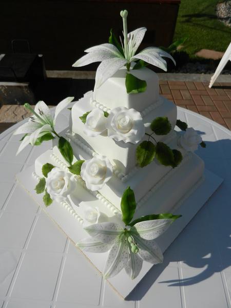 @ladydia s barvením mléčného marcipánu nemám vůbec žádný problém, s jakoukoli barvou, jen pokud chceš čistě bílou, musí se přidat větší množství tekuté běloby a potom je skoro k nerozeznání bílý od Smartflexu - pro porovnání přidávám dvě fotky - čtyřpatrový je z mléčného, třípatrový je ze Smartflexu 😉