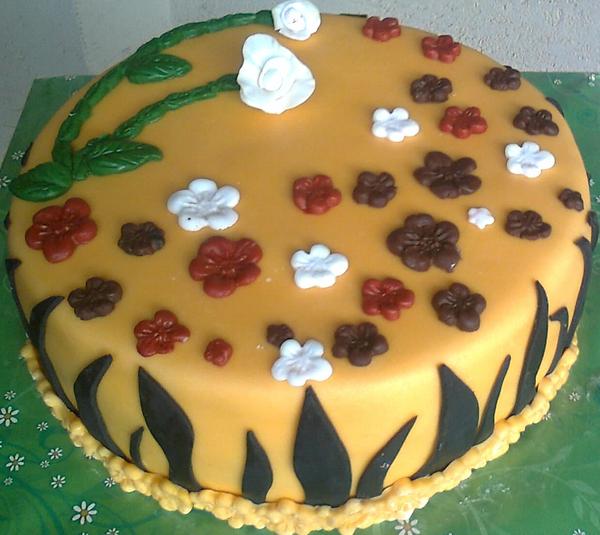 @pralinka25 som si spravila rovne pasiky hmoty na jednom kraji som ho stensila a potom kosticou zvlnila a nalepila na tortu postupne od vrchu vsetky pasiky 😉