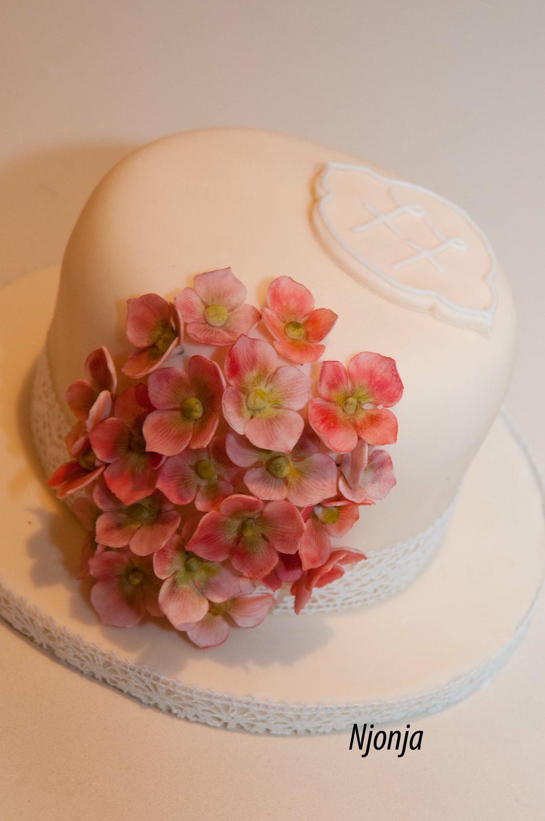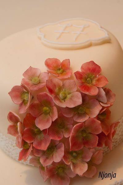 Kocky, pridava svoje tohotyzdnove. Len malinka Hortenzia - 13 cm priemer. Ak odo mna este niekto bude chciet hortenzie, ho asi niekam poslem☹ Sa mi vooobec nedarili☹ mali stat hore na torte, ale nech som robila co som robila, sa mi ich nedalo zviazat tak , aby som pritom neznicila vsetky listky 😠 . Takze som to vyriesila takto..