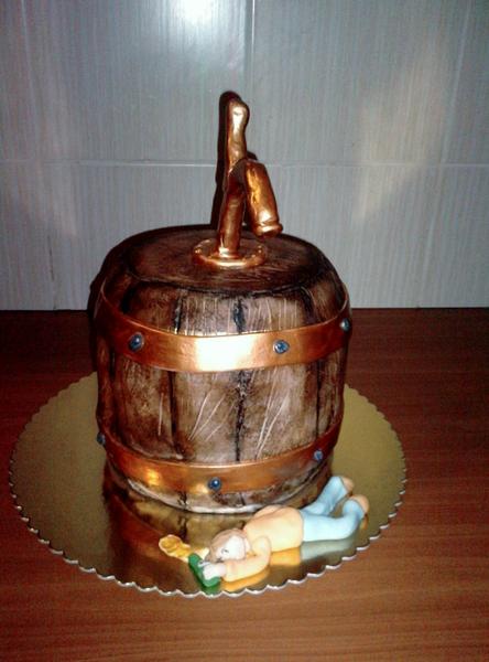 @jenie123 ja som robila v sobotu sud robila som ako poschodovú tortu, naplnila som 2 torty primer som dala 22 (2x plnka, 3x plát) spodnú som vystužila, dala na to tácku a položila vrchné poschodie, trocha som to zrezala hore aj dolu aby to malo troška oválny tvar, poriadne pomazala maslom a potiahla som vcelku bielou hmotou (nechcela som míňať vela hmoty) kosticami som naznačila drevený vzor a akože latky, namalovala som to hubkou kakaom s vodkou, kde sa mali akože latky spájať som dala trocha čiernej prachovky a zatrela som to ešte kakaom...vážila 5,2kg, plnka mascarpone s lesnými plodmi, Trojitá dávka (3 šlahačky, 3 čokolády, 3 mascarpone)