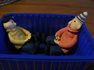 Jo a musím se vám pochlubit - dala jsem šanci MMF a děcka pozortééééé: MNĚ SE TO POVEDLO!!!! Vůbec jsem nejela podle nějakého návodu nebo receptu, ale dala jsem si rozpustit bonbony a pak přidávala cukr podle potřeby..🙂 Ještě by to trocu cukru sneslo (jsem si říkala), ale zabalila jsem to do folie a za hodinu byla hmota úplně úžasná... 🙂 Budu teda zkoušet dál..🙂 Pat a MAt jsou z MMF, jen žlutý svetr je z mléčného...