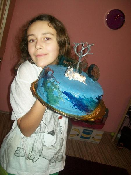 Zrovna jsem se dívala na FB, že tam jedna maminka tady od nás z Opavy vložila dort. Váha pět kilo, plus perníky a za 800,- korun a ještě jim ho zavezla i domů. Nechci sem dávat fotku, kdyby to tu náhodou četla. Ale musím říct, že můj první byl krásně rovně potažený proti tomu jejímu. Ale o to ani nejde, jak vypadal, ale o tu cenu. Já se pak ani nemůžu divit, že 200,- korun za kilo se zdá všem moc, za pracné dorty beru i 250,-. Nevím z čeho peče, psala tam tři druhy krému a korpusy nevím jaké. Normálně to nechápu. Za ty peníze na tom nemůže vůbec nic vydělat a řekla bych podle vzhledu, že je to doma dělaný mléčný marcipán a ještě se dělá i s potahem.