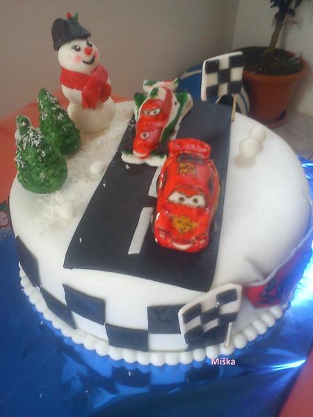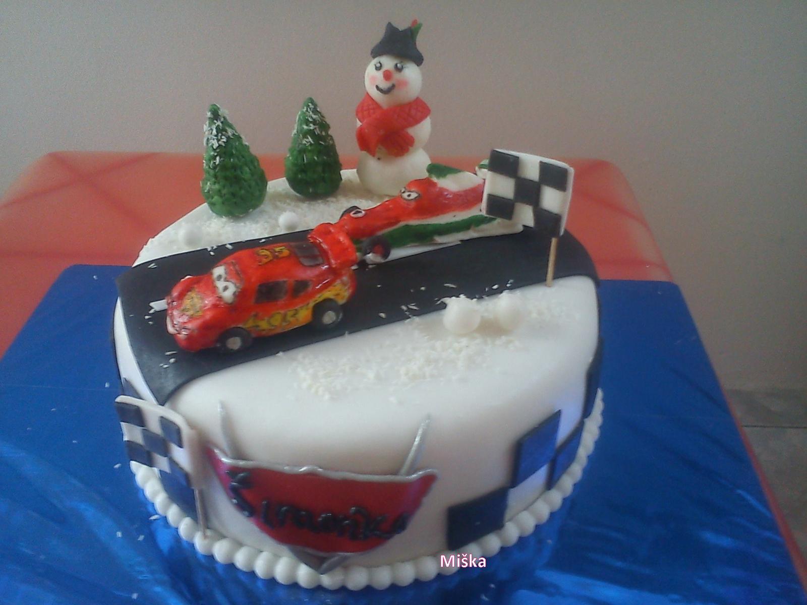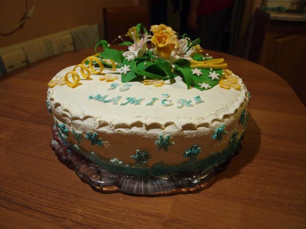Predvčerom sme oslávili mamine narodky a ja som jej robila túto tortu - moja druhá tortička . Nebola úplne dokonalá- nevyšiel mi korpus a teda sa mi nedali doladiť boky torty. No viac ma trápi marcipán - chuťovo bol fantastický no nemám ho taký hladký ako to vypadá na vašich fotkách a nemala som ani šancu z nho dostať snehové vločky. A nedosiahla som takú peknú belobu, aj keď som na to vyplácala celú flašku beloby.