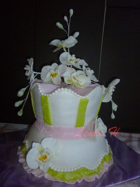 Dobojované, poslednú som stihla chvíľu pred odovzdaním. 🙂 Ďakujem všetkým, ktorý mi poradili ohľadom tej polgulovej tortikčky, i keď mi to nevyšlo ako som chcela, vrchná menšia v pohode a spodná mi po zrezaní do tvaru a otočení začala durch praskať, tak nastala zmena plánu a totálna zmeny tortičky, volala som zákazníčke, že mi to tak nejde, či to môžem urobiť inak a dala mi volnú ruku, hlavne nech to je ako pre princeznú s volánikmi a čačkami, nakoniec bola nadmieru spokojná, že vraj krajšia ako vybrala, tak mi odľahlo, to je tá s orchideami. Tá s kremienkom a chocholúšikom bola pre môjho maléh do škôlky, a dinosauríkovú, tam som dinosaríkov nerobila ja, boli z cukru ako penová torta, to si doniesli z cukrárne od nejakej známej, lebo malý neznáša marcipán, tak všetko ostatné som dotvárala čoko do akože treťohorô či čo 🙂 🙂 🙂