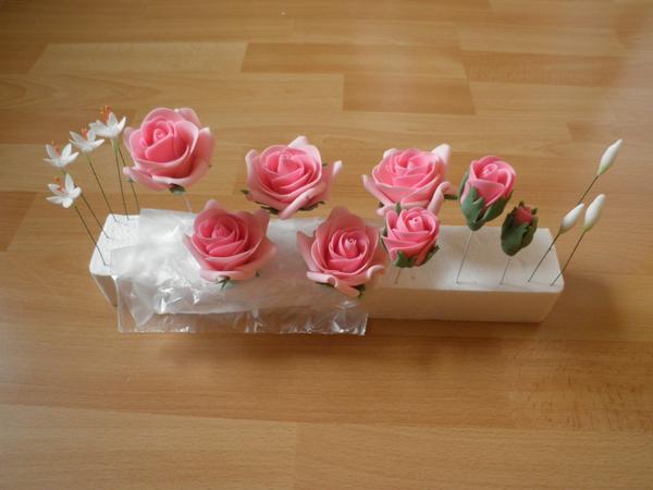 @luciahromadkova to nevím jak se jmenují, vykrojím tu pěticípou kytičku, dám na drátek a jenom kosticí vytáhnu ty špičky a ztenčím a je to. Pak to dole trochu potřu zelenou prachovkou a zapíchnu tam ty pestíky. Je to rychle a k tomu dělám takové jakoby poupata, co jsou na pravé straně. 😉