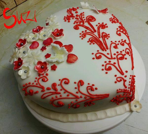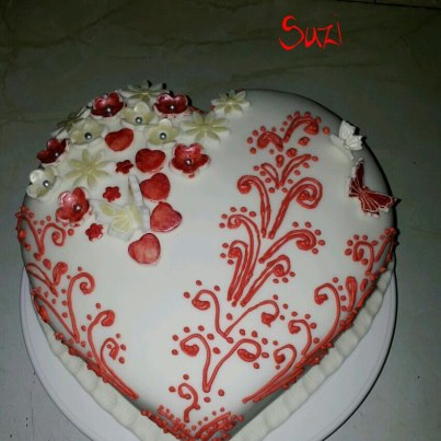 Moja oneskorena Valentinska :D nemala som moc casu a chcela som vyskusat kreslit na tortu , tak preto iba dnes. Ale ako mne len ruky triasliiiiiiii no hotova pohroma, a pritom medovnicky zdobim v pohode. Ale asi ze to na torte bola premiera. Troska prehnane plna ale som sa vyblaznila troska :D inak coko korpus a biely parizak s mascarpone a jahodamy .