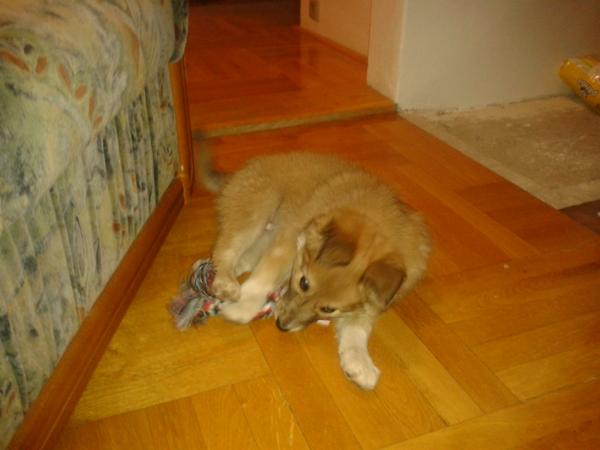 tak jsme holky domaaaaa 😉 přivezli jsme si úúúúžasnou fenečku Aishu, je tady jako doma, hned si očuchala celý dvůr, ale pláče nám, stýská se jí po mamince, hledá ji 😢