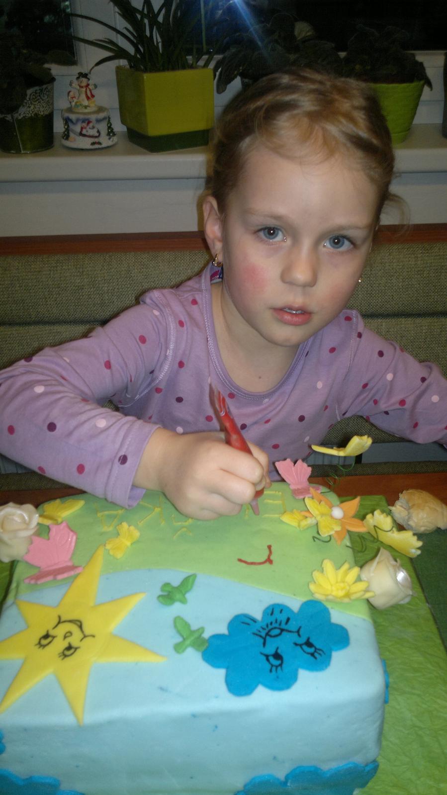 babulky a pridavam fotecky torticky aj ked musim povedat ze zdobila viac eliska ako ja ja som len potahovala a robila neake ozdobky ona to uz potom vsetko presne instruovala co kde ako mam dat a napisat chcela sama meno aj cislo takze ziadne umelecke dielo to nieje ale je to najkrajsia torta aku mam pretoze sa eliske najviac pacila dokonca mi zobrala aj ruze co som mala na inu tortu nachystane a napchala si ich tam ani nemam poriadnu fotku ale aspon nieco kouknite