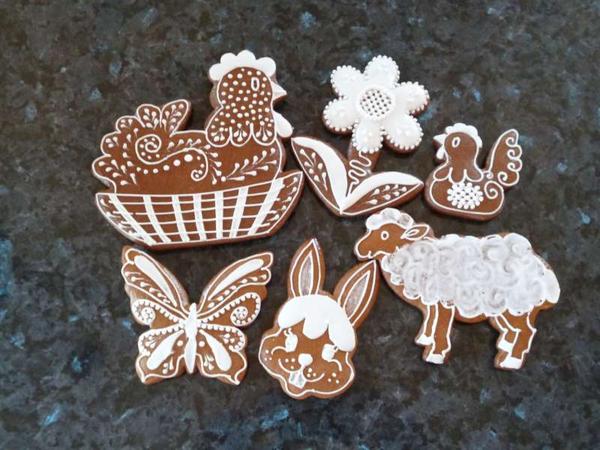 a tady jsou moje včerejší perníčky, vajíčka jsou plněný lentilkama a gumovýma medvídkama a každý má 10 dkg 😉