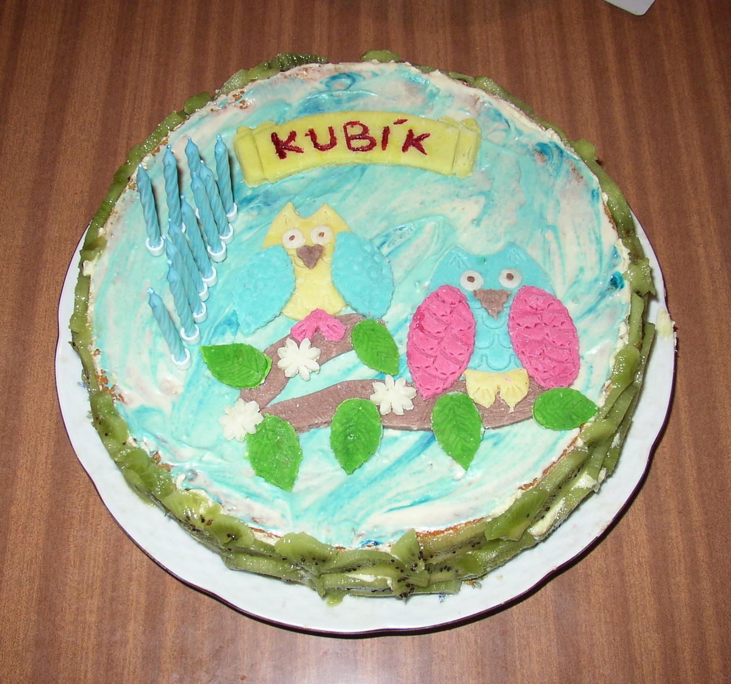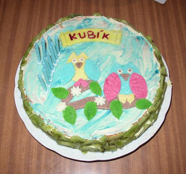 Ahoj holky,po dloooouhé době nám čím přispět.Dort pro synka k 1.narozeninám na oslavu k prababi.Nechtěla potahovaný,takže je to čokoláda a ovoce,jen ozdoby jsou z potahovky .