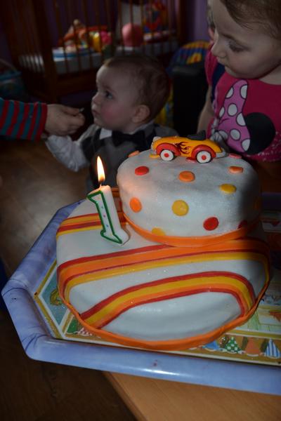 Jeden i s malým oslavencem🙂 Autíčko na dortě je podle dárku🙂