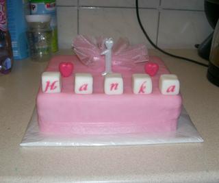 jinak - dělám pro syna na 3 narozeniny Bleska podle tady toho návodu, co mi dala anibas http://www.make-fabulous-cakes.com/car-cake.html, je to můj teprve 4 potahovaný dort, tak mi držte palce. Včera jsem si udělala 2 mramorové korpusy a ořezala, dneska chci naplnit a večer potáhnout. Mám udělané mmf, ale barvy mám jen práškové, tak to nebude ono... snad se to bude aspoń trochu podobat