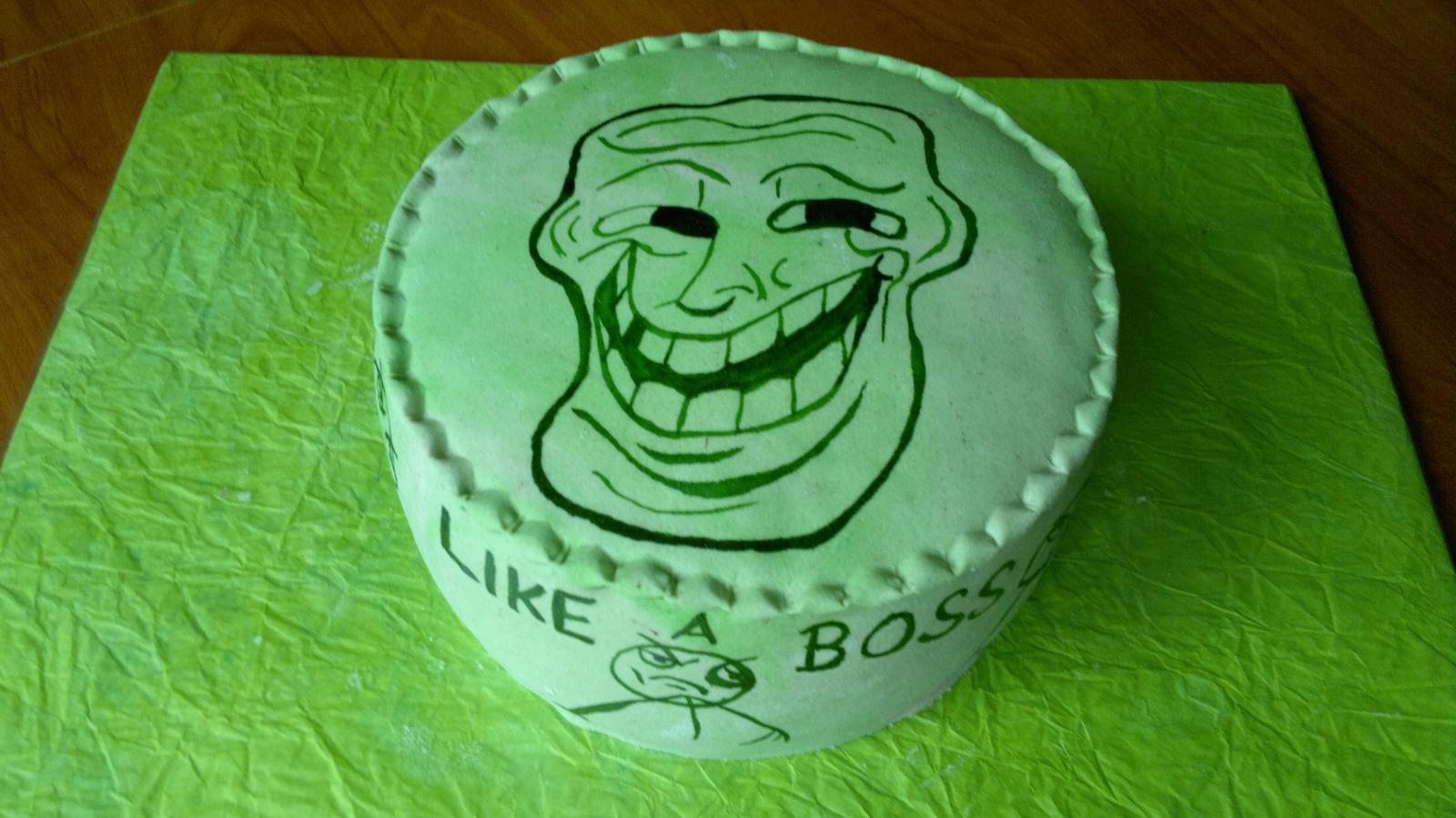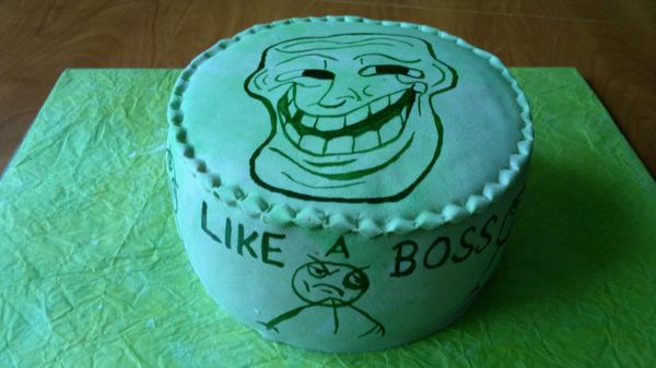 dobry vecer tak pridavam jednu malu tortusku pre synovca poslal mi obrazok podla coho to mam robit takze torta trollface a po bokoch nice a boss netusila som ze co to je take skarede ksichty no na com to dnesny pubisi ficia tak snad bude spokony 😉