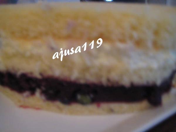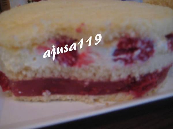 A tu tortula bola s malinami a cucoriedkami a tvarohovy krem.