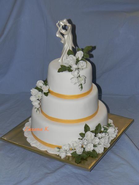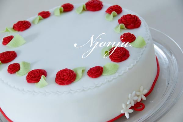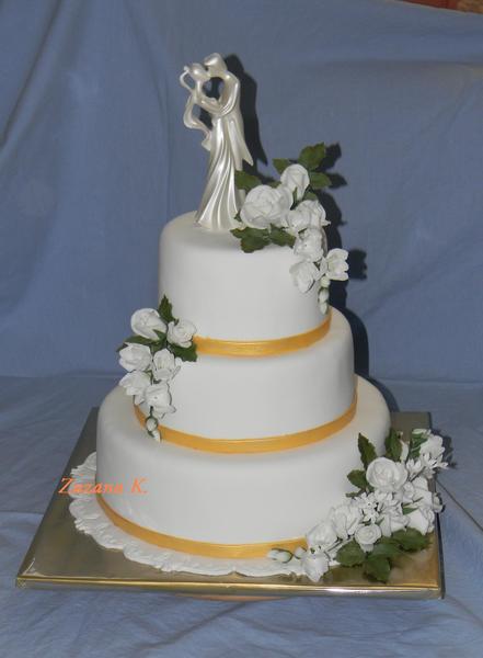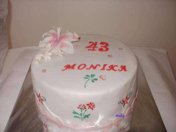 Tak kočky ja som mala mať volný výkend a nakoniec dve. tu poťahovanú objednali v piatok večer a v sobotu večer ju brali.Predstavte si doniesli mi aj kvietky s predošlej čo som im už raz robila ešte ked som začínala,ved aj tak vyzeraju.Že aby som nemala vela roboty tak nech dám tie. Chcela som urobiť narýchlo aspoň margarétky,alebo gerberu. No čo čert nechcel v sobotu manžela stiahli do práce ja na krku dve decka ,a robiť dve torty. Na obed mi prišla nečakaná návšteva takže ma zdržala.Odišli drobec si otvoril tic-tac čo dostal od návštevy .Ja som utekala robiť plnku. Vymixovala som ju idem kuk na decká čo robia a pozriem na malého oči zaslzené z nosa mu tečie hovorím čo si robil? Pozriem mu do nosa a on tam mal tic-tac nešlo to vyfúkať.Volam doktorke,čo robiť ,že utekať na pohotovosť na krčné. rýchlo som volala mm nech odíde z práce,že ho cestou vydvihnem. A utekali sme na pohotovosť. Jasné natrafili sme na doktora debila na malého pekné slovko nepovedal,len sa rozčuloval nanho nech neplače . Naštastie všetko dobre dopadlo ,ale deň debil.A jasné aj torta tak dopadla. Kedže 17.30 a ja torta nenaplnená nič. Ale nejako som to stihla ,len to bolo aj vidno,ale vysvetlila som to.Tak dúfam pochopili.