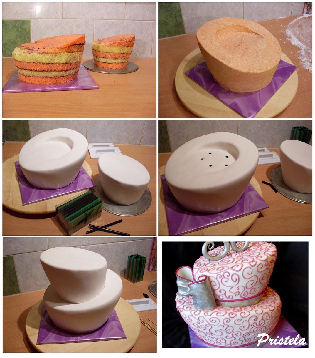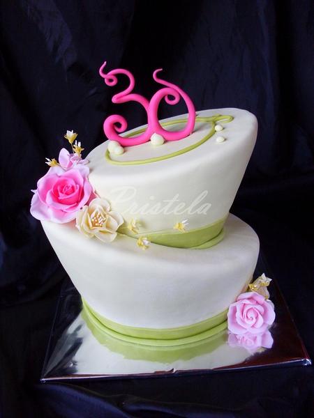 @mamina1978 mrk na toto foto , ty ked zrežes ten vrch šikmo tak to zrezane normalne nacapiš naspäť na vrch torty , len na druhu stranu a to ti tiez zvacsi vrchný obvod kedže to musis trosku vysunut do strany aby to bolo šikmé , no a druha foto ta torta Maminke tak tam mam rovnaky rozmer spodnej aj vrchnej torty a ta zelena 30tka je mensi vrch
