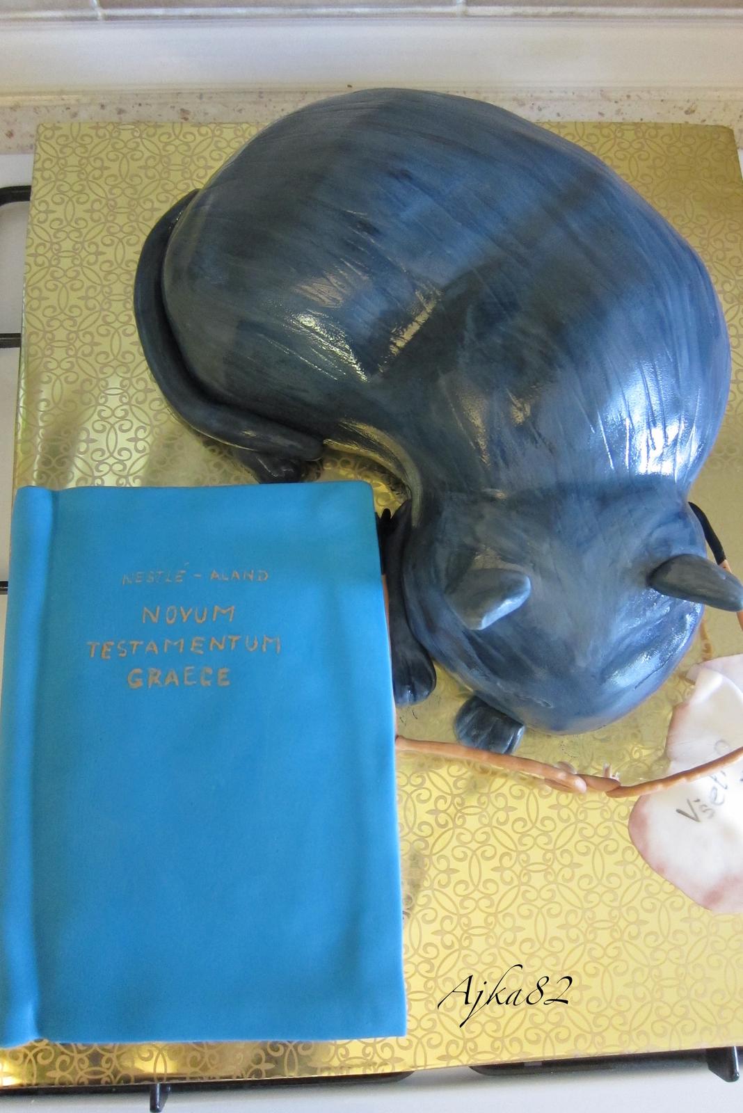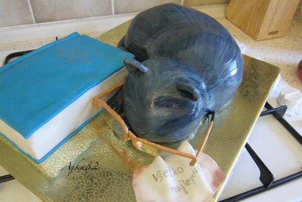 tak moja dnesna pre sesternicu... ze ich ucitel grectiny pozval na grilovacku akurat na jeho 50tku a nevedeli mu nic vymysliet, tak sa ma pytala, ci by som im neupiekla 😅 😉 ...bledy k. coko+visne ...tak hadam budu spokojni, ze ich knihu a pre neho ipicke polozene brilky na stole... a este mi vysnorili jeho macku, tak som to nejak takto porobila, ked nic ine nevedeli