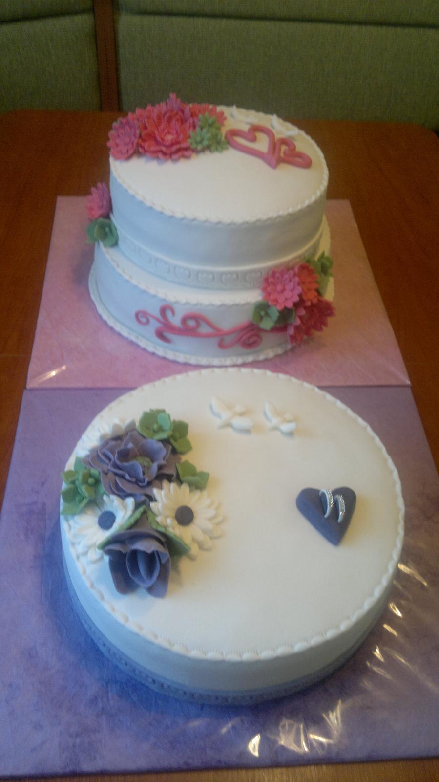 ahojte babulky tak u mna dobojovane juuj ale sa mi straaasne nedarilo tak aj tie torticky tak vyzeraju ali im dam aj zlavu alebo co 😝 😝 😝 obidve svadobna fialkova je orechovy korpus rafaelo krem a cucoriedky 4,5kg a dvojposchodova spodok cokokorpus banany pribinacik vrch mramorak banany parizska slahacka s mascarpone