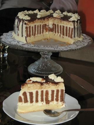 ja robim aj parizsky krem original, taky co sa den dopredu robi,ale ide do toho mlieka tusim CERA a vajicko... potom odlezi a na druhy den sa vyslaha... vyzera potom zakusok takto.. som robila ja. ten nalavo... .. a tiez mam rada klasicke plnky nad parou 🙂 mňáááám 🙂ale na tortu si to neviem prestavit....
