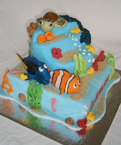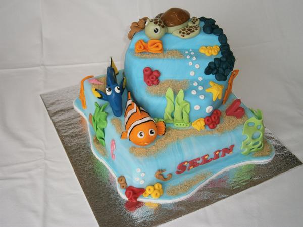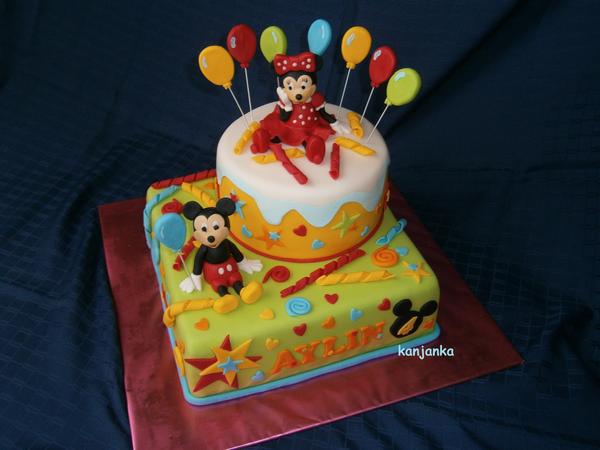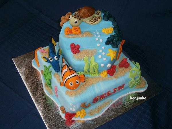 Nemo je dole orechovy, orechovo-kavova plnka, dzem a banany, hore cokokorpus, maliny, tvaroh, dzem, a Mickey je dole mramorak, lesna zmes a pribinak, a hore biela piskota, cokopribinak a mandarinky 😉