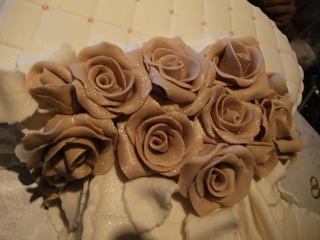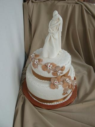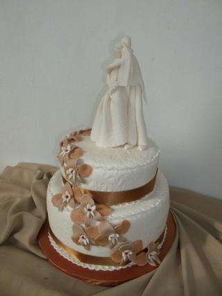 Já dělala korpus ořechový od evičky, ale ta dávka byla celkem velká, tak jsem to dala do dvou forem a dcerka mě přemluvila, ať udělám poschoďový, takže potahování byla fakt lahůdka, trochu se mi to na dvou místech skrčilo, ale snad to nebude na fotkách vidět.