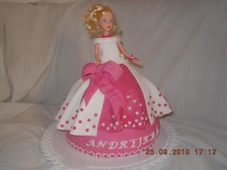 @zuziq v bábovkovej forme som upiekla piškotu a potom porezala a plnila.No a ešte takú mištičku malú som si kúpila v 30-ke a to som dala na vrch.Tam dieru vyrezala na bábiku a bolo.Punčovinou dorobila rozdiel a bolo. 😉