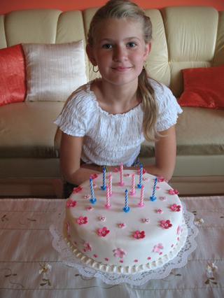 akurat moja dcera , ked uz sme vytiahli ozdobenu krasnu tortu z chladnicky na stol, tak na nu polozila sviecky(!!!) takze sa fasa otlacili tie drziaciky na marcipane, skoro ma porazilo! ja to hladim, aby to bolo hladke a ona toto... co uz.... chcela tam silou mocou aj sviecky a jedine dve farby co sme mali 10boli modre a ruzove, tak ta modra je od veci, ale nevadi... sfukla ich a chutovo torta skvelaaaaaa