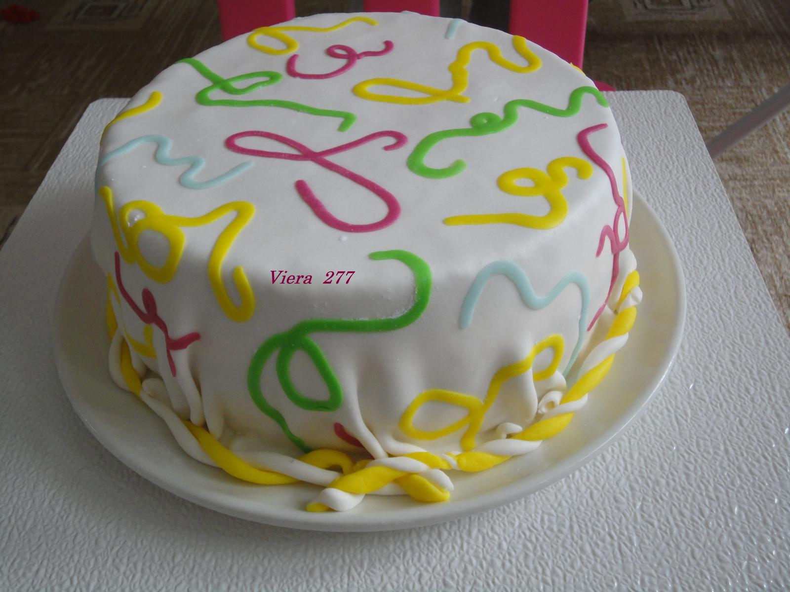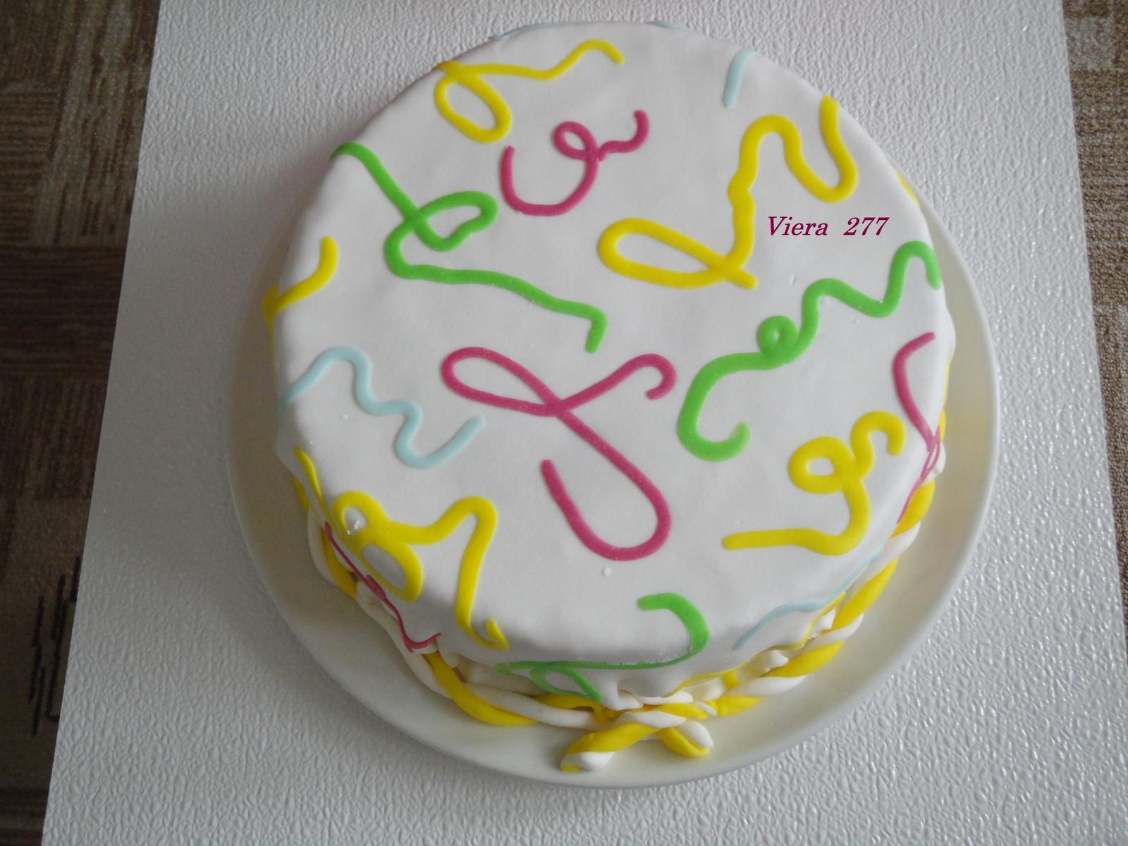 @vendullka Jeeeej, krásna tortička, ja sa tiež chystám skúsiť túto metódu. Ale neviem čo je tá biela hmota ktorou sa to kreslí....... 🙂 Kúpila som si od Dr. Oetkera bileu polevu v tube na medovníky, tak to chcem vyskúšať s tým na kúsku hmoty.