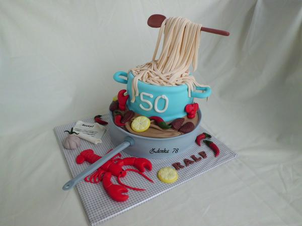 Moja vcerajsia torticka , ktoru kamaratka u mna objednala pre svojho manzela. Ten mal vcera oslavu aj v luxusnom kucharskom kurzovom clube. Jej sa torticka pacila, no nemam spravy ako pochodila na oslave, dufam, ze dobre....