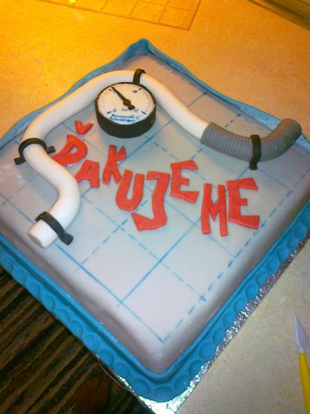 Babule šikovnice, viem že toto moje dielo nie je nič extra krásne, a teda nechytám sa ani na jednu z vás, lebo len začínam s tortičkami ale ako nápad sa oslávencovi páčilo :D. 1. torta bola pre svokra murára, ktorý nám robí všetky murárske práce okolo prerábaného domčeka a druhá torta je pre mojho ocina k 53.narodeninám, tan nám zase zbúchal kompletné teplovodné podlahové kúrenie. Je tam original budík na meranie tlaku s hodnotou 5,3 ;), dilatačné pásy a dilatačná rúrka a samozrejmosťou je fólia pod podlahovku... možno ako inšpirácia niekomu padnú do oka 🙂