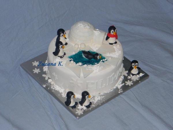 moje víkendové tortuše, pri tej píle som si hlavu búchala o stenu,že prečo som tú zákazku zobrala. V utorok začatá a vo štvrtok hotová, pílu som horko-ťažko preložila na tortu, čo bola ešte mäkká, nevytuhnutá a taká nijaká. Tvárili sa neutrálne, tak ani neviem, ako dopadla, či sa vôbec aspoň trochu páčila. Kvôli píle som zanedbala tučniačikov, na ktorých som sa tešila a nakoniec som ich "odflákla", mala som úplne inú predstavu, musela som ju zjednodušiť, ale keďže nevedela kamoška akú som mala predstavu, tak sa jej tortička páčila :D. Tak dúfam, že ešte niekto bude odo mňa tučniačikov chcieť, toto boli moji prví za tri roky, čo pečiem torty.