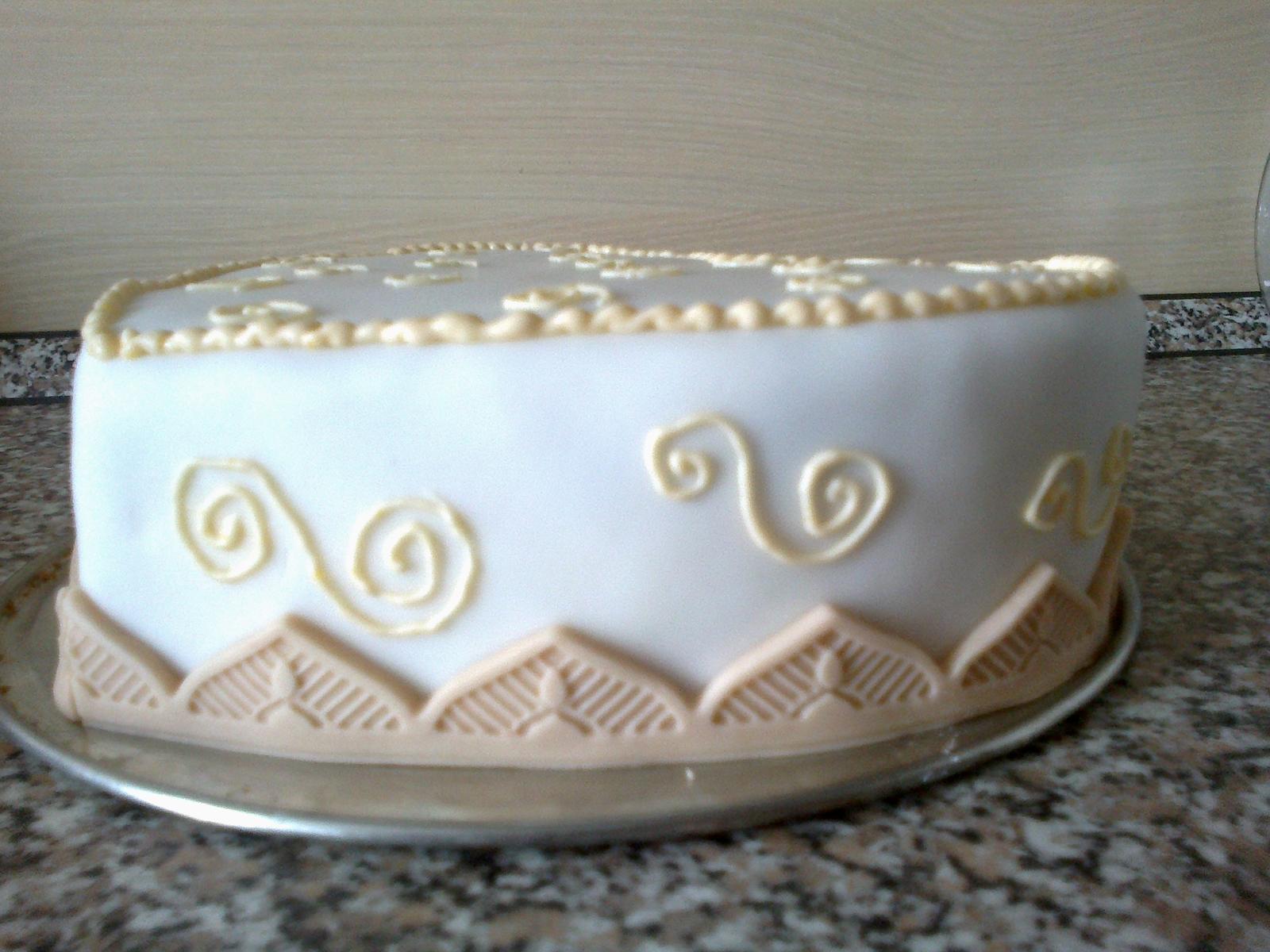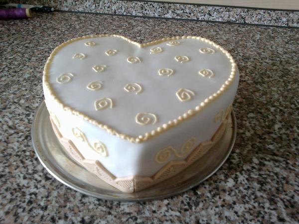 To srdiečko bol len pokus. Potrebovala som odskúšať nový recept, novú tortovnicu, novú silikónovú formičku na okrajovú lištu a prvý krát som skúšala tie ornamenty ktoré sa mi mi moc nepodarili ale budem na nich pracovať