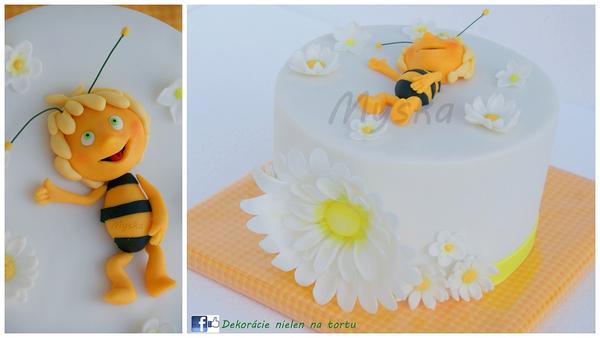 jedna najmensia torticka na svete pre moju vcerajsiu meninovu oslavenkynu - 12cm priemer... z poslednyx sil v noci o pol 2hej, takze ziadna piplacka, ale z lasky 😉 a ja sa tyx rozpravok asi nezbaviiiim... vcielka Maja, ale poziadavka bola ze nie ta klasicka, ale nova - uz vyxudnuta - som ani netusila, ze su dake nove diely 😝