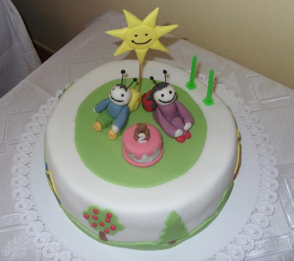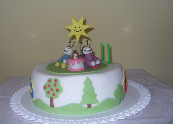 Bambuľko a Bulienka pre dcérku k dvom rôčkom.... 🙂 dcérke sa moc páčila, aj chutila, ale ja som z nej bola úplne nešťastná, lebo sa mi v strede strašne preliačila ☹ keď som ju začala krájať, som zistila, že prečo...trošku som to prehnala s krémom a ovocím....normálne bolo treba hľadať korpus v tom množstve krému a ovocia 😖