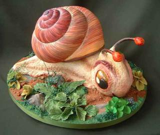 @sofi07, ty vyzeras na profesionalku, krasne su tvoje torty. Ten 3D Slimak je naozaj aktualny - vlozeny predvcerom - ta cukrarka si ho piekla pre seba a manzela k 23. vyrociu svadby. Tiez nebola prva, kto ho robil - za vzor mala tortu istej Lindy Smith (prikladam foto). A figurky na ulite - to ma byt ten parik, co oslavuje vyrocie - vyrobou figurok sa autorka inspirovala u istej Natasel (tiez foto z jej tvorby, aj link na jej stranku, ak ti to pomoze). Inak, bola tu otazka na ulitu - ta nie je potahovana, ale poliata cokoladou - tri farby - horka, mliecna, biela... (Plnka pistaciova a ine - v roznych castiach slimaka...)