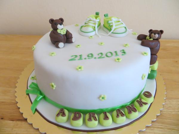 tak som to zvládla,čo som zháňala tú foto zelenkavo hnedej krstinovej torty,tak som to takto urobila,torta mala mať 5kg a má 5,2 kg ,celkom so sa trafila zhaľdom na to ,že 30cm som ešte nerobila 🙂