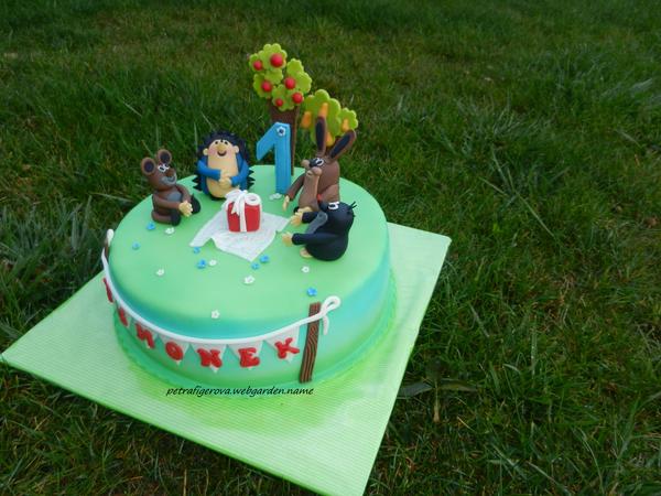 ahoj holky, díky za další krásné dortíky k inspiraci 😵 , přidávám i já svoje, u té krtečkové jsem měla průšvih - spletla jsem jméno - místo Štěpánka jsem si zafixovala i zapsala, že má být Šimonek, přijel pro něj chlap, nevšiml si toho a volala mi potom paní, že je tam špatně jméno, no já jsem byla na infarkt, tohle se mi ještě nestalo 😢 , naštěstí její mamka jela ještě něco zařizovat cca 10 km od nás, tak se tady stavila pro nová písmenka - jako kdybych to tušila, lepila jsem je na vlaječky a až ty na dort, takže se jim to snad podařilo odlepit a nalepit nové, ještě jsem jim k tomu přidala čokoládu jako omluvu a dýško, co jsem dostala navíc, jsem s omluvou vrátila 😖. Takže jsem měla celkem zkaženou sobotu ☹