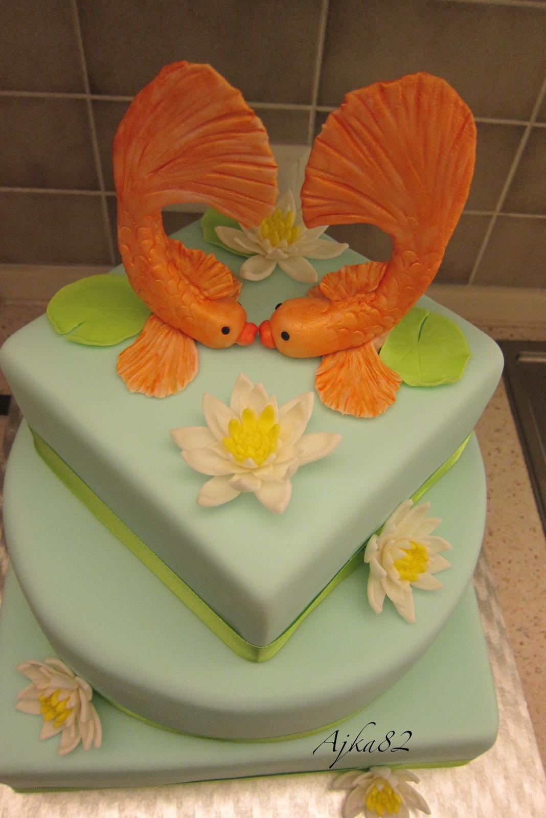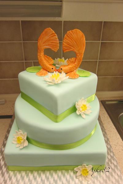 fotila som teraz, rano by som nestihla, ked musim este aj lieky popodavat detom v tom case ako maju prist 😉 zadanie som mala vlastne na vsetko :D "nechceme klasiku bielu okruhlu, lebo bude este jedna torta a ratam, ze to bude nieco take, ...atd atd. takze nieco v bleduckomodrom s rybickami a leknami, kedze zenich....atd atd....,a stvorcovu" 😎